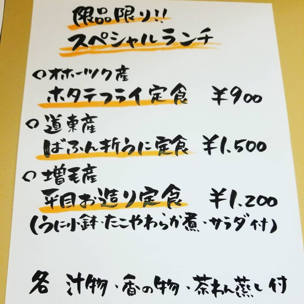 #ランチ #うに #平目 #ホタテフライ